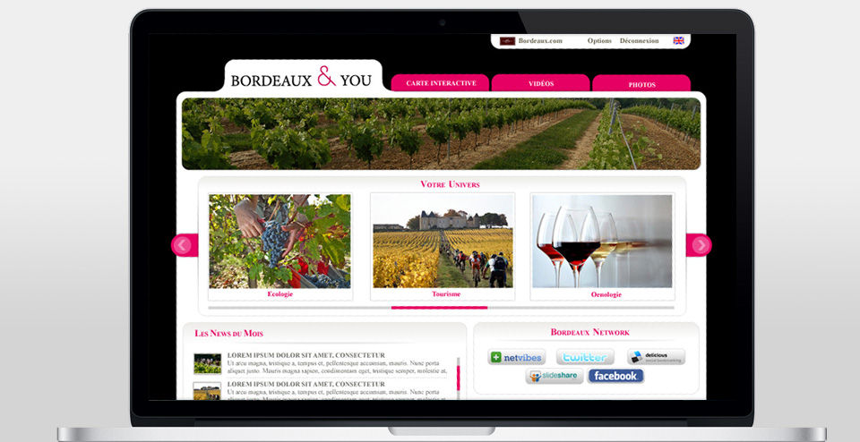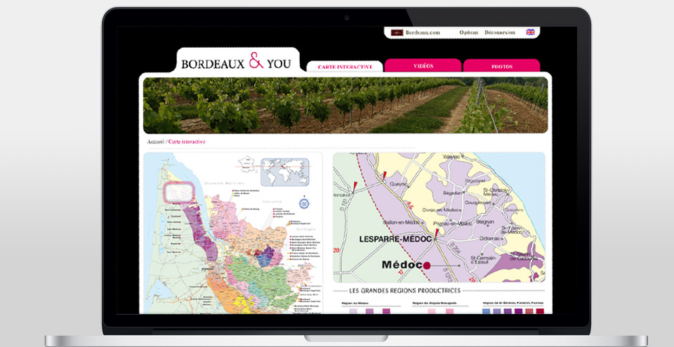Conception graphique de la plateforme Web Bordeaux & You pour les vins de Bordeaux.