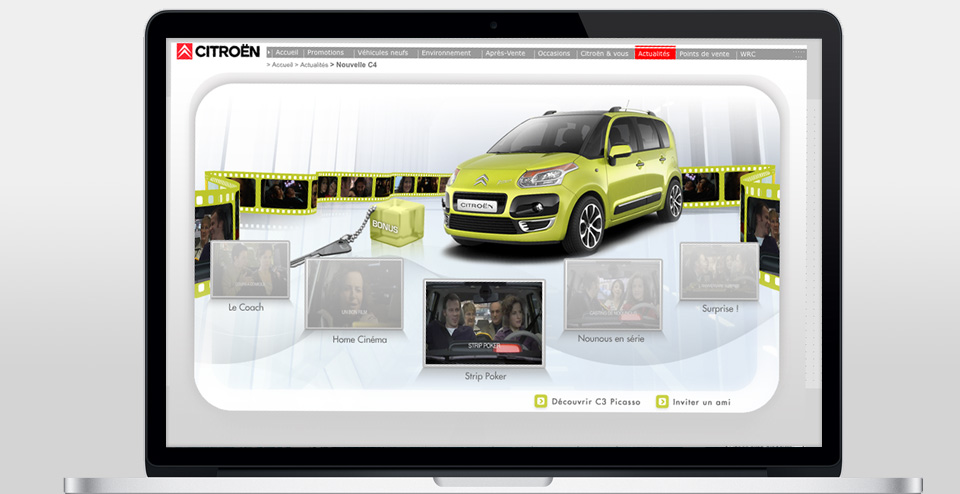 Conception graphique du site événementiel pour le lancement du c3 picasso.