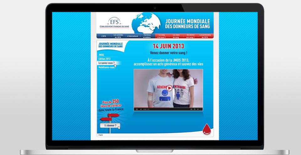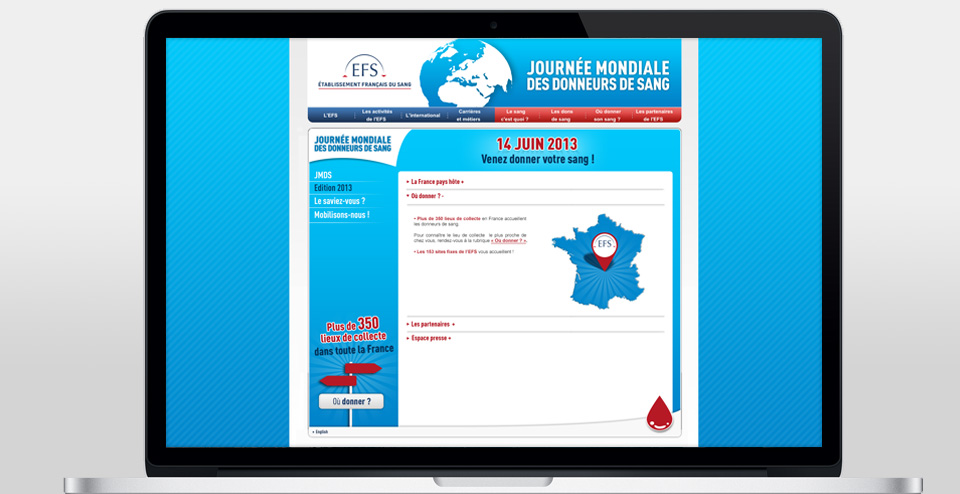 Conception graphique du site événementiel pour la Journée Mondiale du Sang.