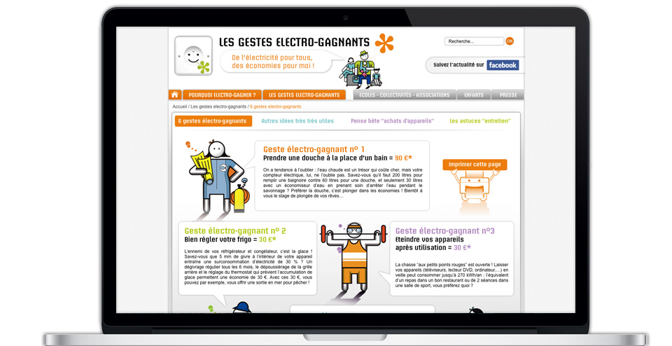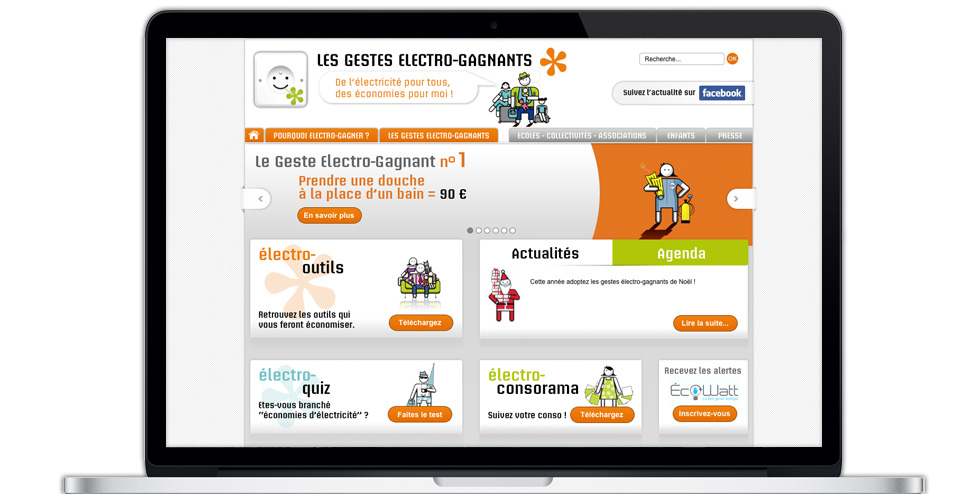 Conception graphique du site des Gestes Electro-Gagnants pour le conseil des Alpes Maritimes.